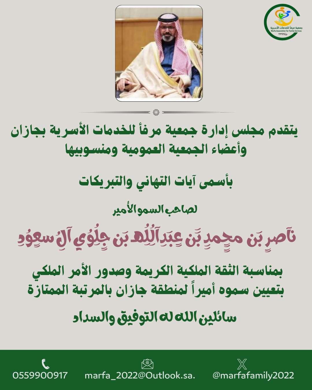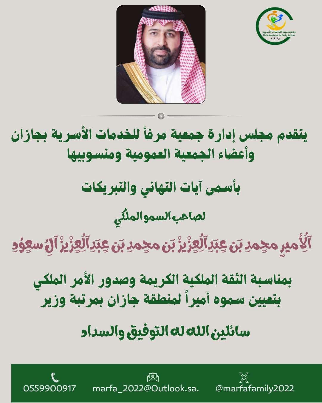 وامر_ملكية يتقدم مجلس إدارة جمعية مرفأ واعضاء الجمعية العمومية ومنسوبيها بالتهاني والتبريكات لصاحب السمو الملكي الأمير محمد بن عبدالعزيز ال سعود وصاحب السمو الأمير ناصر بن محمد الـ سعود للثقة الملكية