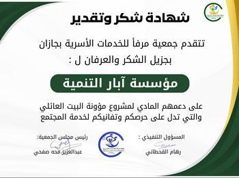 شكر لمؤسسة آبار التنمية لدعم مشروع مؤونه البيت العائلي